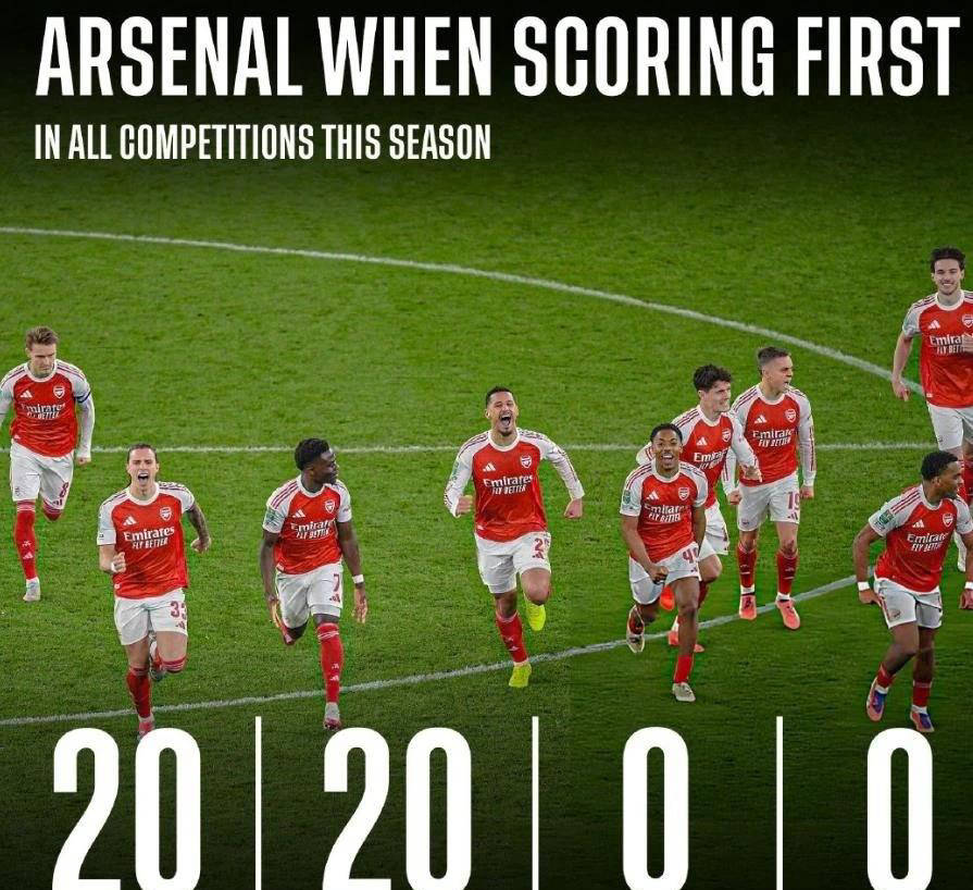 作为2024-2025赛季欧洲五大联赛中表现最为耀眼的劲旅,阿森纳凭借稳定而强悍的发挥,持续赢得外界的高度关注和认可。媒体与球迷们纷纷挖掘出这支伦敦球队背后的致胜秘诀——只要阿森纳在比赛中率先取得进球,球队便能锁定胜局,保持百分百的胜率。这一数据令人振奋,也成为枪手本赛季冲击各项赛事冠军的重要保障。